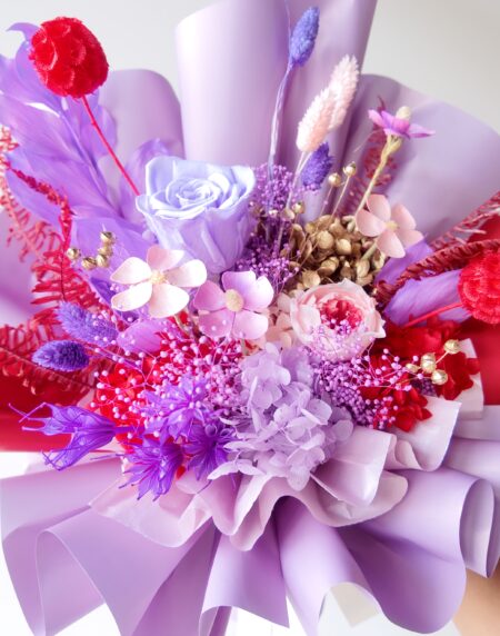 Azul is a small bouquet of dried flowers in blue to express trust and loyalty.