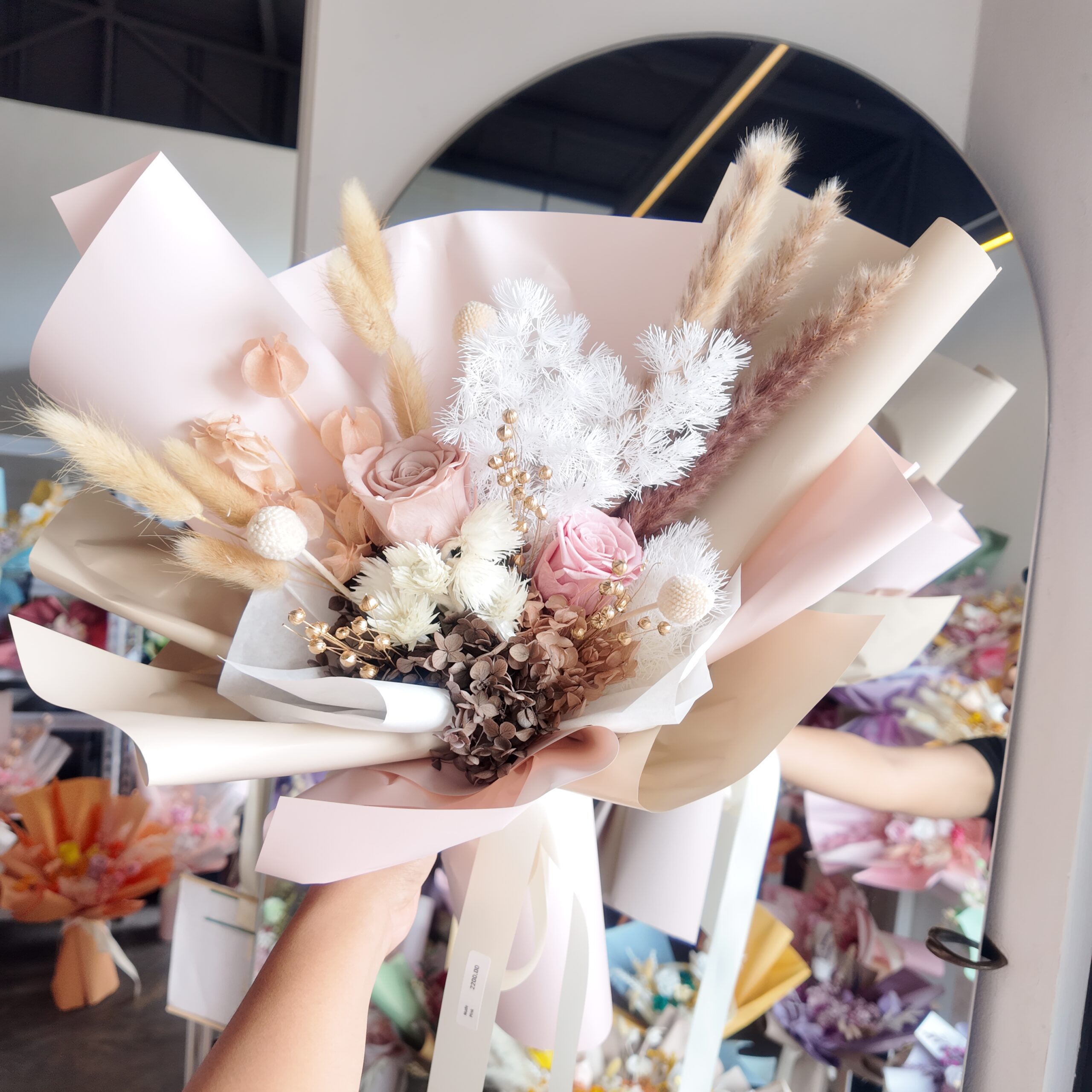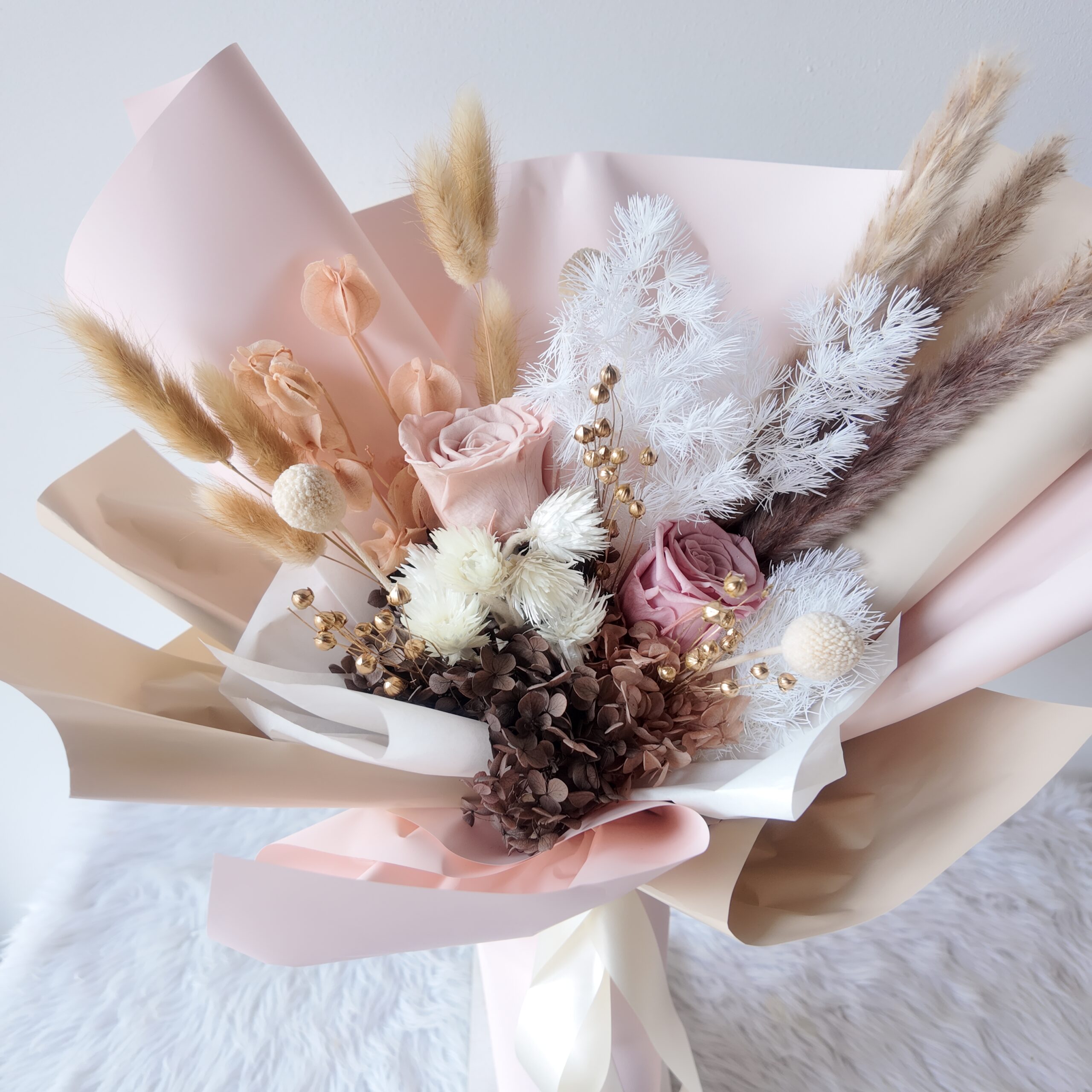 Includes brand tag, message card, and care tips.