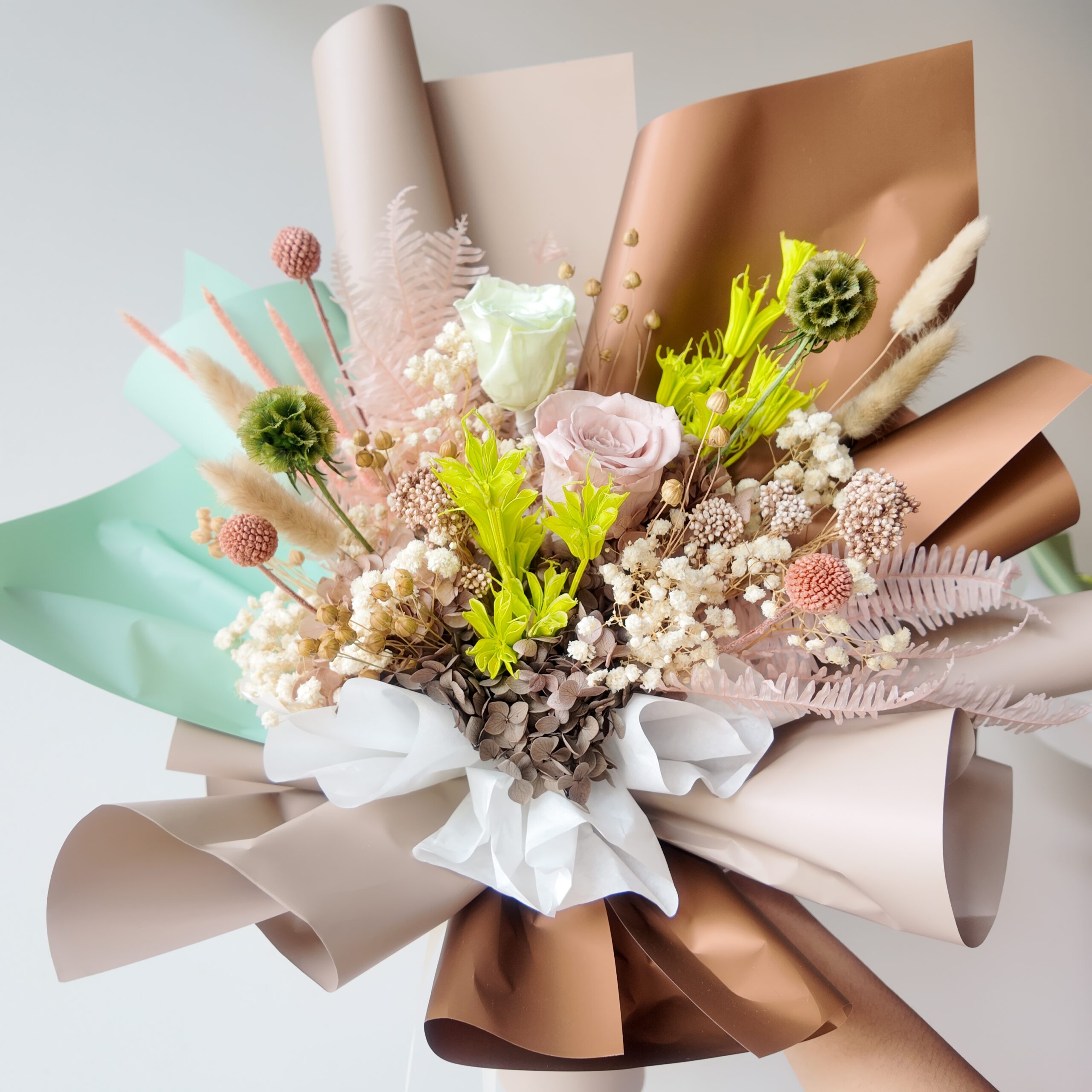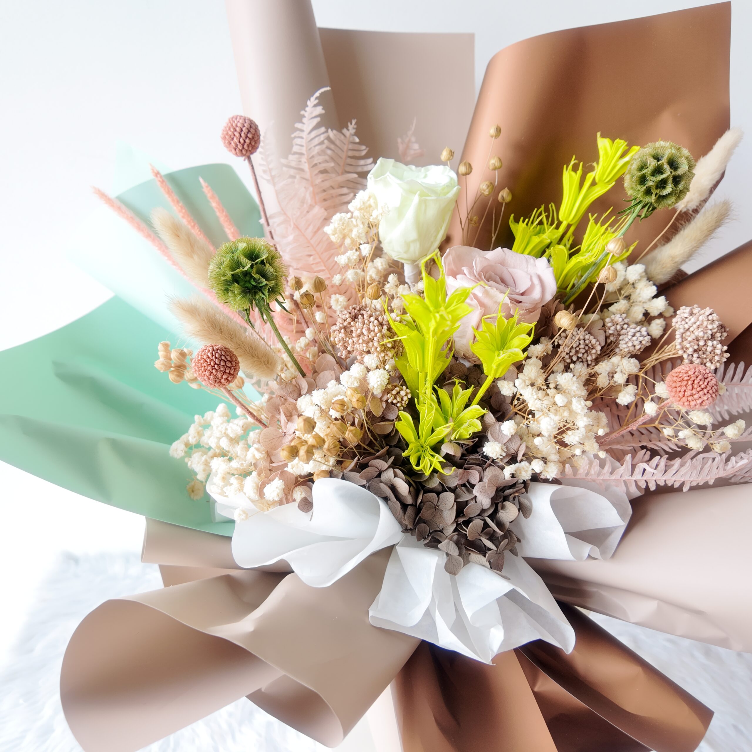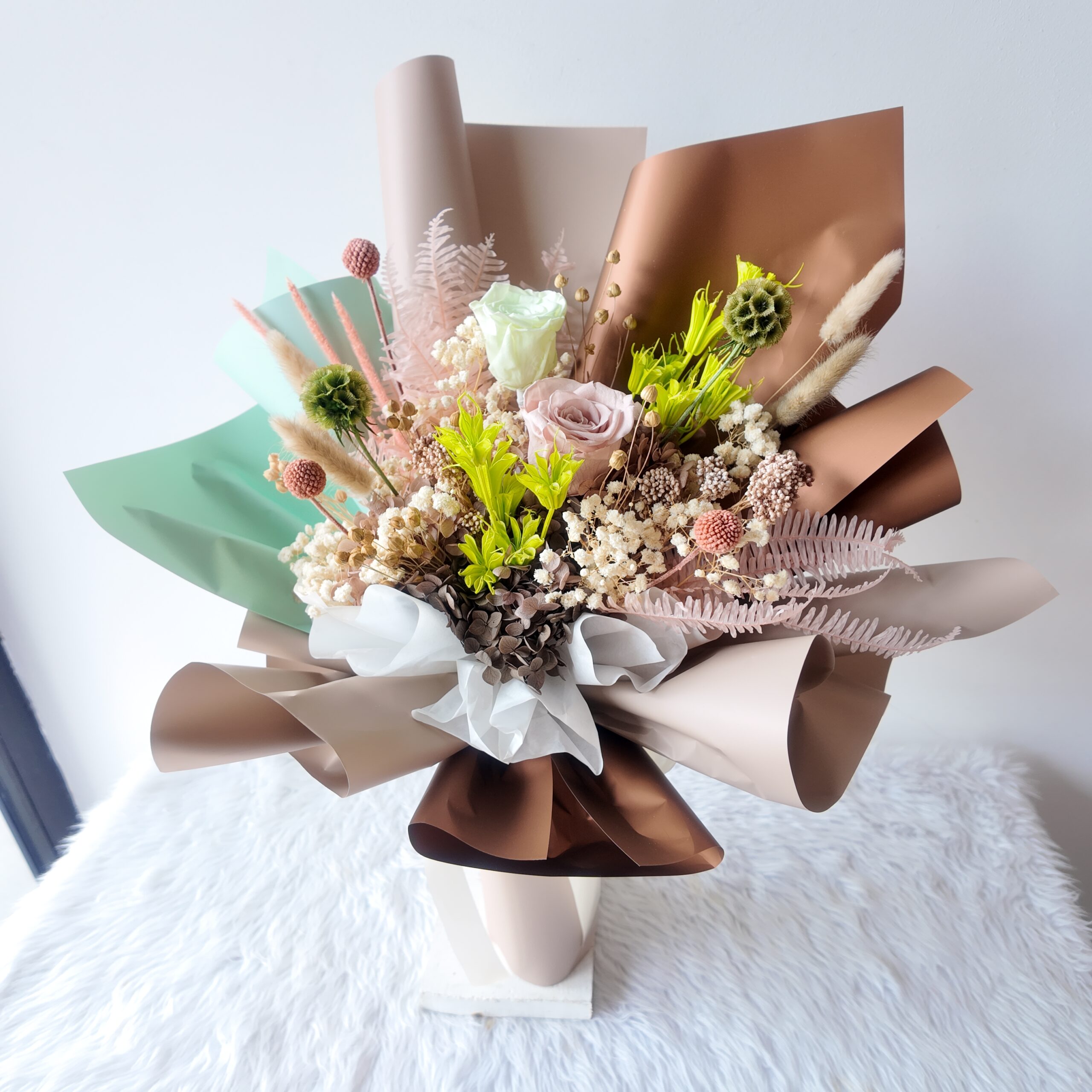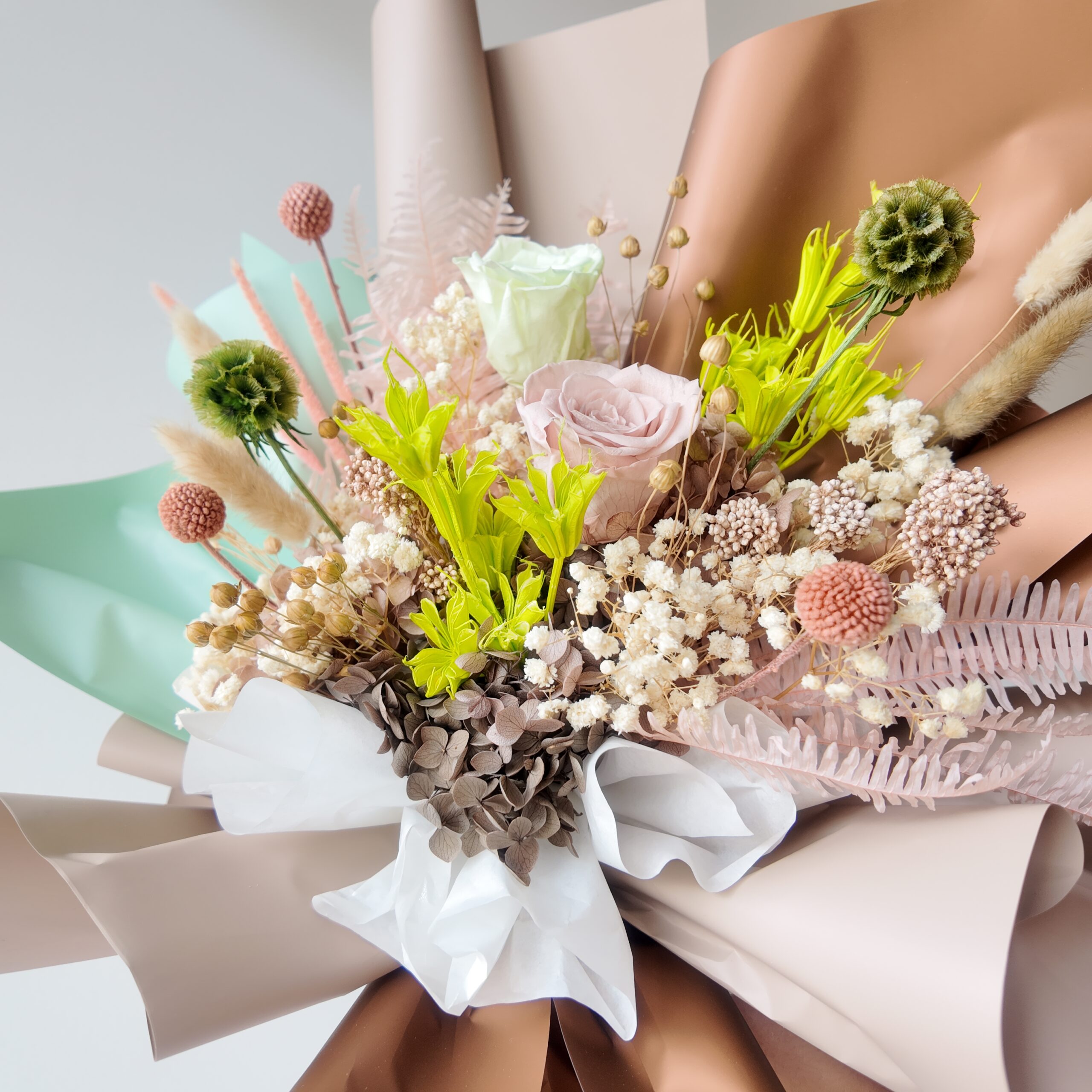 Includes brand tag, message card, and care tips.